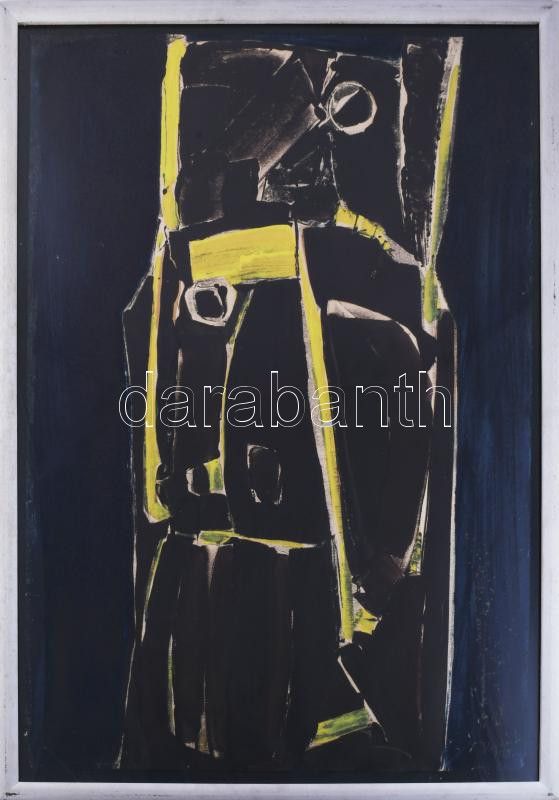 Hajdú László (1938-): Küzdelem III, 1969. Monotípia, papír. Jelezve jobbra lent. Hátoldalán autográf felirattal és Art'éria Galéria Szentendre bélyegzésével. 84,5x59,5 cm. Üvegezett fakeretben.