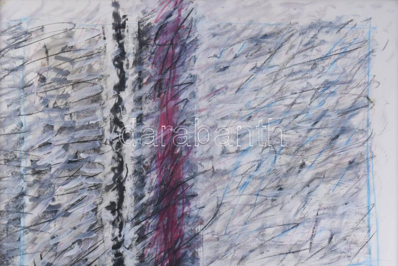 Hajdú László (1938-): Párhuzamosok, 1989. Vegyes technika, papír. Jelezve jobbra lent. Hátoldalán autográf felirattal és Art'éria Galéria Szentendre bélyegzésével. 88x62,5 cm. Üvegezett fakeretben.