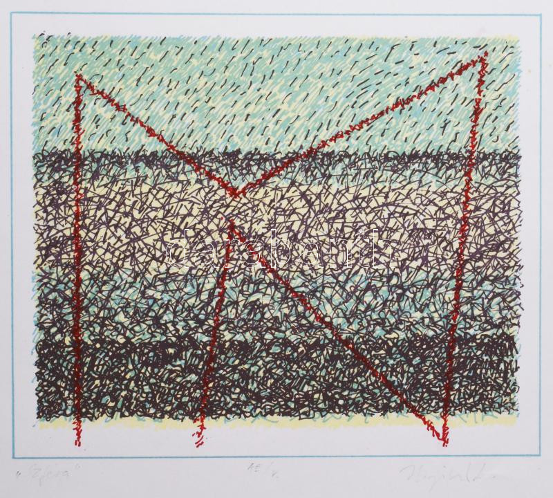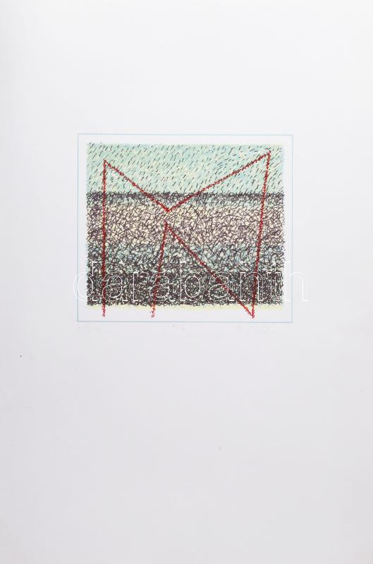 Hajdú László (1938-): Szféra. Szitanyomat, papír. Jelzett. Művészpéldány AE/V számozással. 24x48,5 cm. Szentendrei Grafikai Műhely év szitanyomata díját elnyert alkotás.