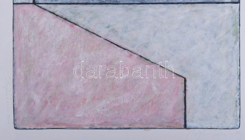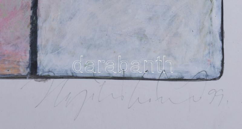 Hajdú László (1938-): Térérzetek I., 1999-2000. Akril, kártyapapír. Jelezve jobbra lent. Hátoldalán autográf felirattal. 45x45 cm. Üvegezett fakeretben.