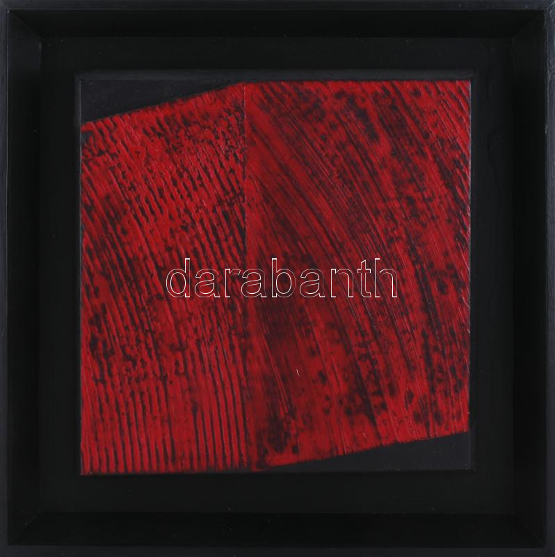 Hajdú László (1938-): Vörös lakk feketén, 2010. Akril, vászon. Jelzett a hátoldalán. Fakeretben. 28x28 cm.