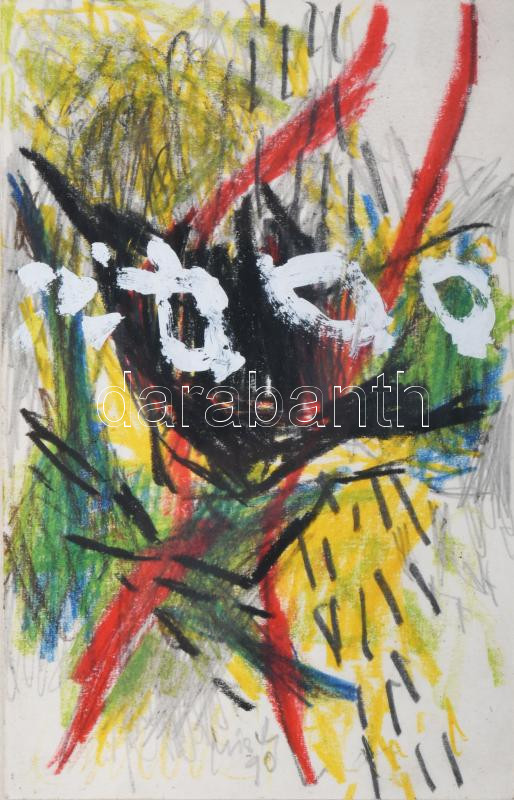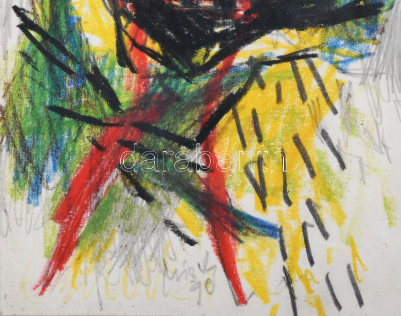 Misch Ádám (1935-1995): Cím nélkül, 1990. Vegyes technika, papír, jele...