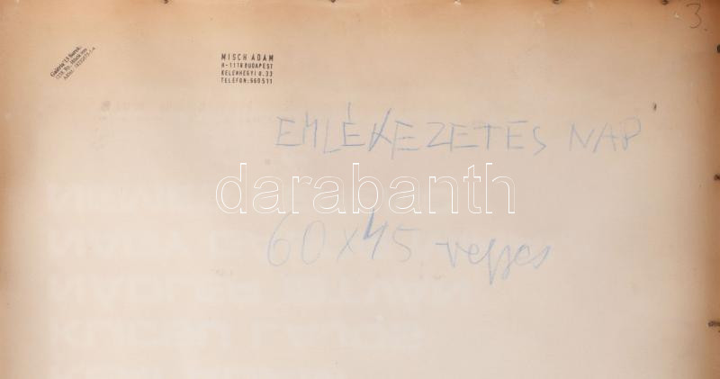 Misch Ádám (1935-1995): Emlékezetes nap, 1983. Vegyes technika, papír,... https://www.darabanth.com/en/Misch-masch-Adam-MIsch-Arbeiten-auf-Papier/244.2/The-works/Paintings-and-graphics~96616/Misch-Adam-1935-1995-Emlekezetes-nap-1983-Vegyes-technika-papir-jelezve-jobbra-lent-~II3493395