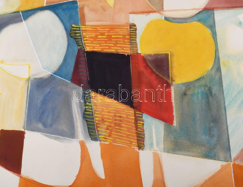 Misch Ádám (1935-1995): Geometrikus kompozíció (cím nélkül), 1976. Akvarell, papír, jelezve jobbra lent. 51×72 cm.