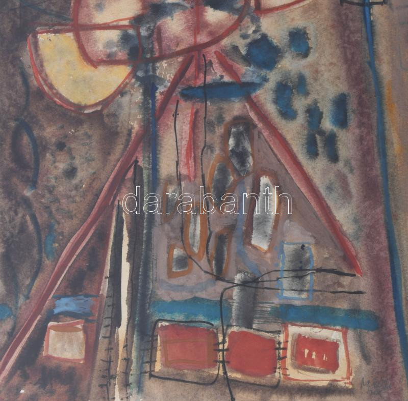 Misch Ádám (1935-1995): Jelek (cím nélkül), 1965. Akvarell, papír, jelezve jobbra lent, üvegezett fakeretben, 49×34 cm.