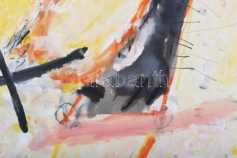 Misch Ádám (1935-1995): Kompozíció sárgában. Vegyes technika, papír, j...