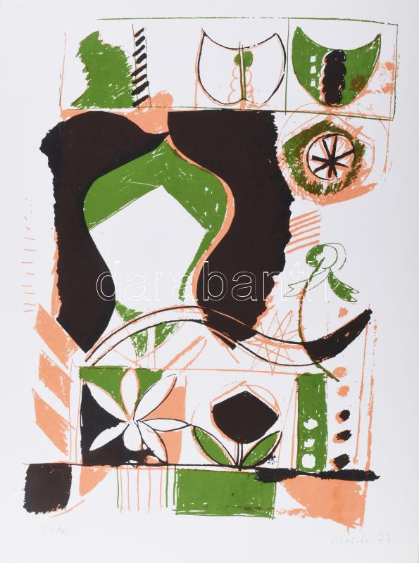 Misch Ádám (1935-1995): Motívumok (cím nélkül), 1973. Szitanyomat, papír, jelzett, számozott (21/40). 45x35 cm.