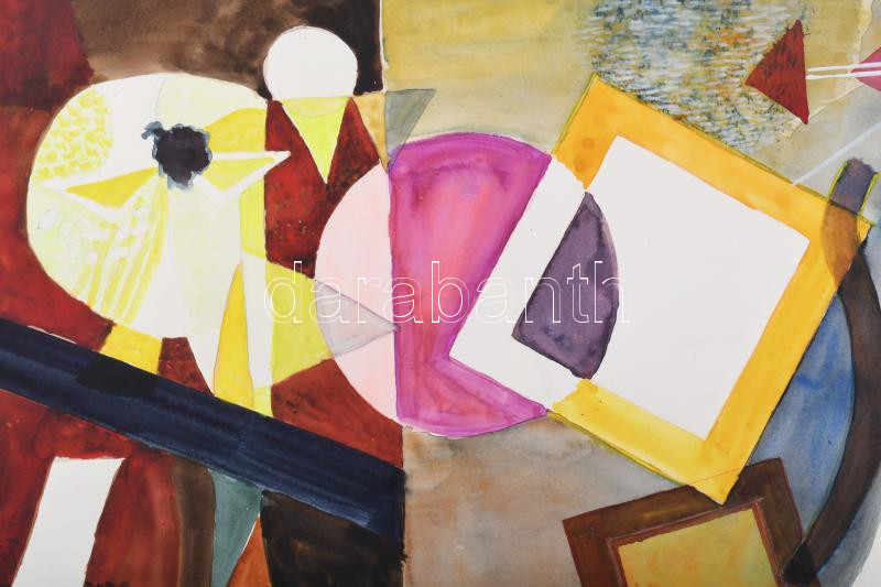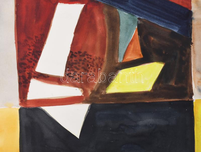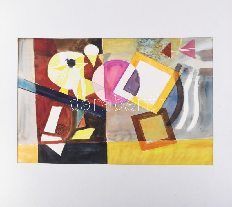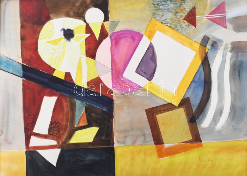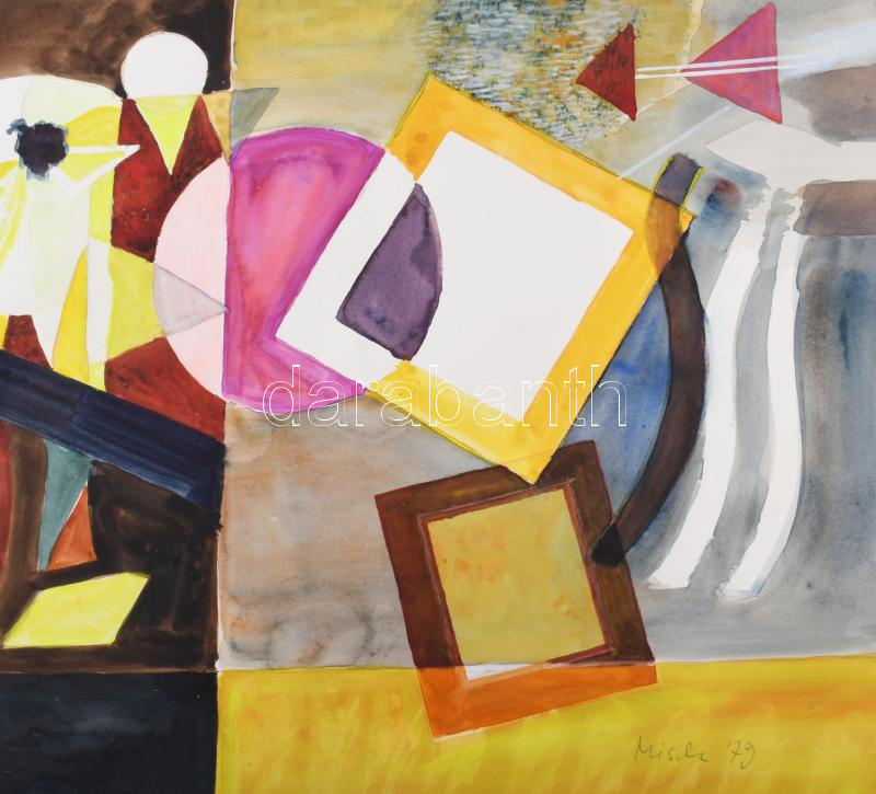 Misch Ádám (1935-1995): Szalagos kép, 1979. Akvarell, papír, jelezve j...