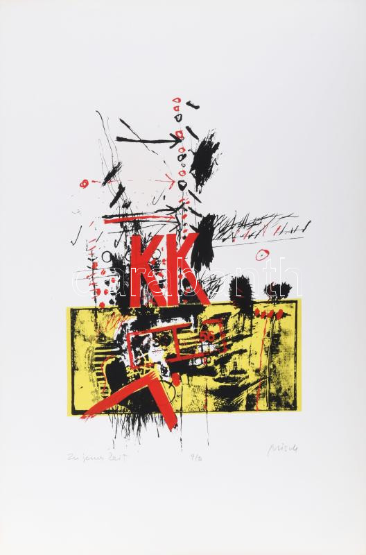 Misch Ádám (1935-1995): Zu jener Zeit (Abban az időben), 1980-as évek. Szitanyomat, papír, jelzett, számozott (9/10). 44,5×33,5 cm.