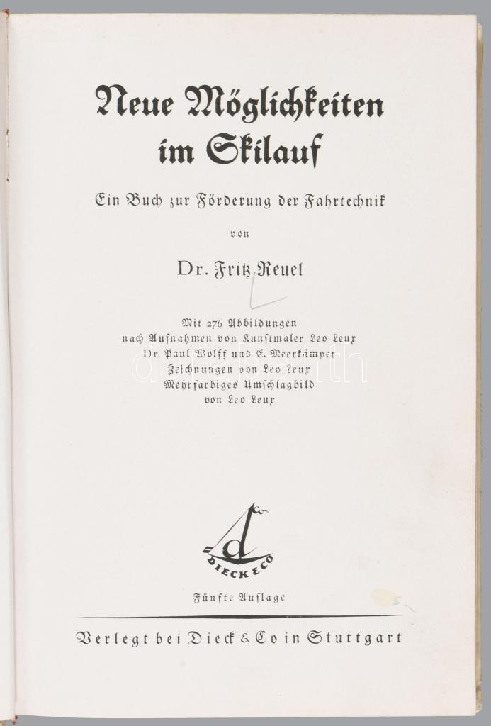 Reuel, Fritz: Neue Möglichkeiten im Skilauf. Ein Buch zur Förderung der Fahrtechnik. 5. Auflage. Stuttgart, Dieck, s.d. 1930. VIII, 260 p. + 2 t. 276 db illusztrációval. Kiadói kartonált keménykötésben