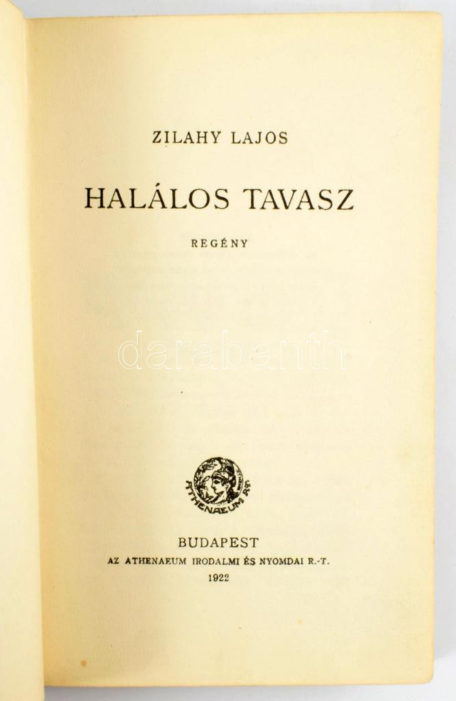 Zilahy Lajos: Halálos tavasz. Bp., 1922, Athenaeum. 160p. Első kiadás! ALÁÍRT! 156/200. számozott példány. Kartonált kötés, gerinc sérült, kopottas állapotban.