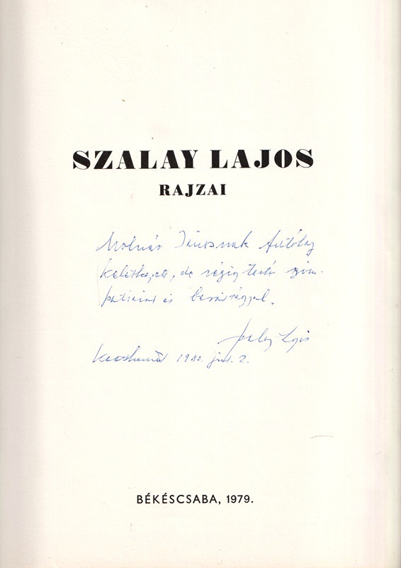 Dedikált: "Molnár Jánosnak futólag keletkezett, de régóta tartó szimpátiával és barátsággal: Szalay Lajos. Kecskemét, 1980. júl. 2."