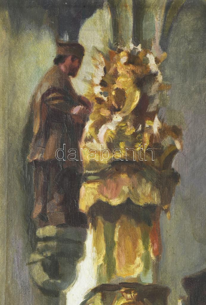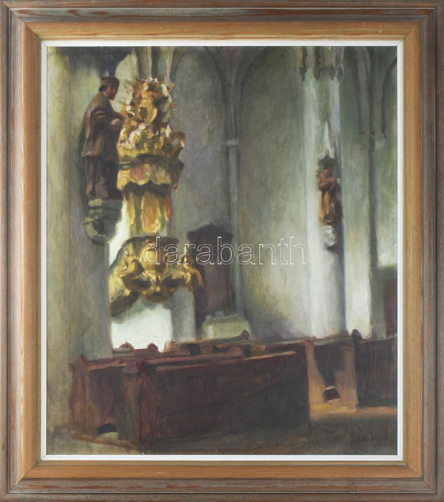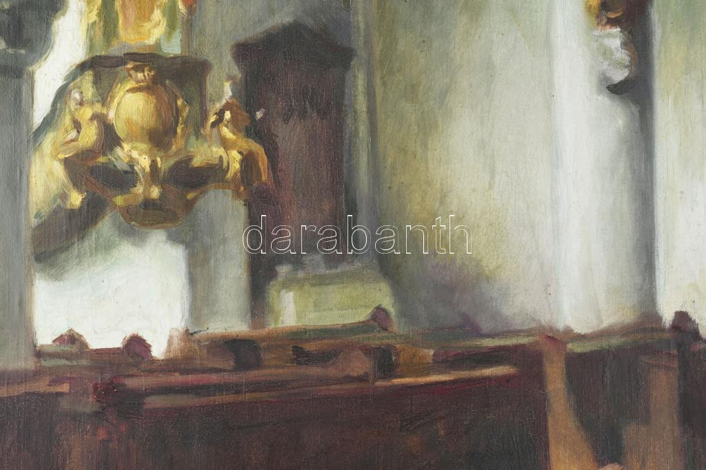 Ágoston Ernő (1889-1957): Templombelső, Sopron. Olaj, vászon, jelezve jobbra lent. Fakeretben. 70x60 cm