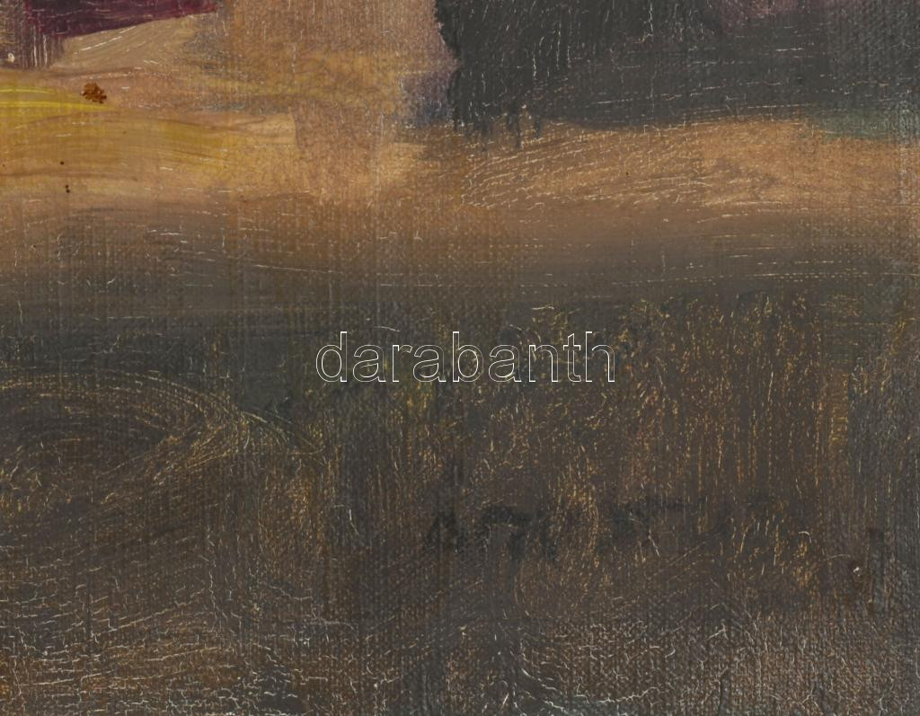Burghardt Rezső (1884-1963): Lányok a mezőn. Olaj, vászon, jelezve jobbra lent. Üvegezett, sérült fakeretben. 39x53 cm