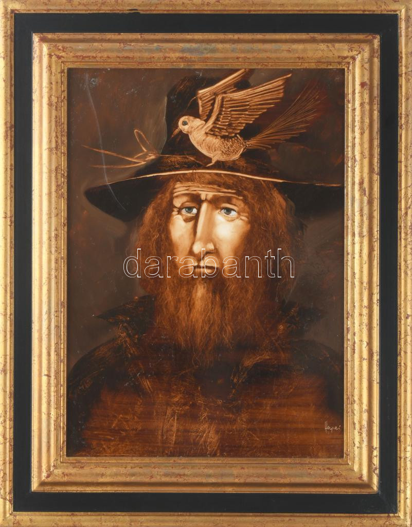 Herpai Zoltán (1951-2011): Öreg portré III. Olaj, farost, jelezve jobbra lent. Dekoratív fakeretben, 40×30 cm