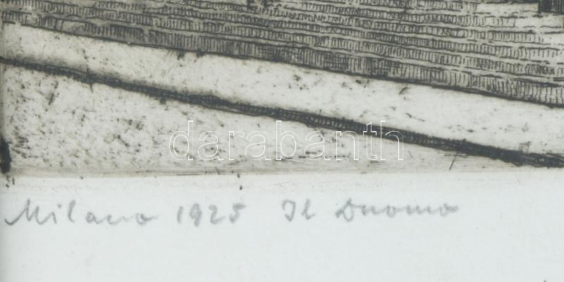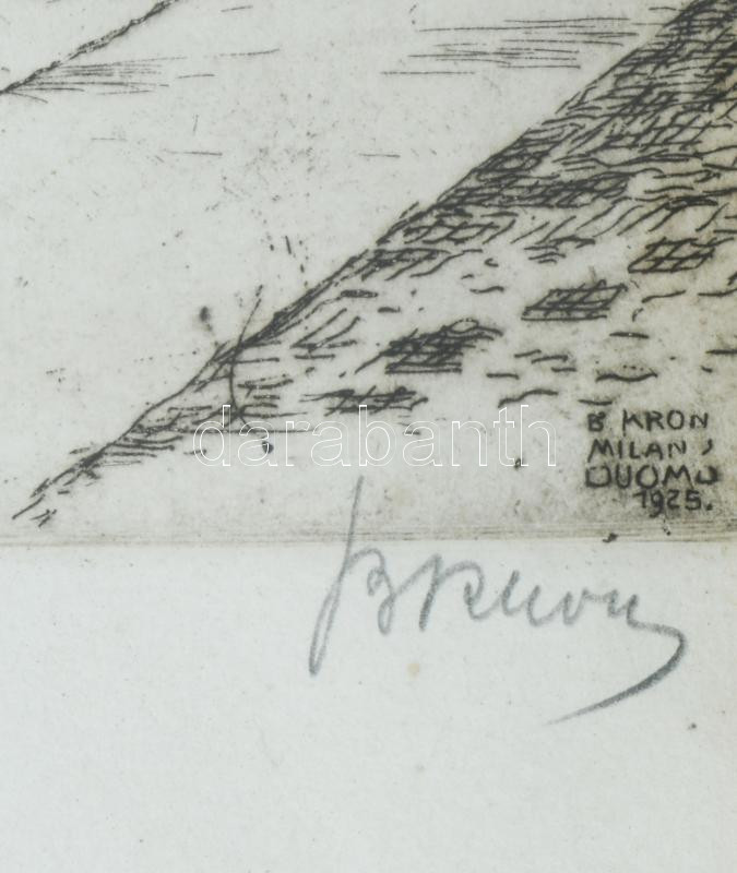 Krón Béla (1884-1965): Dóm, Milano (Duomo di Milano), 1925. Rézkarc, papír, jelzett, üvegezett fakeretben, 30×24,5 cm