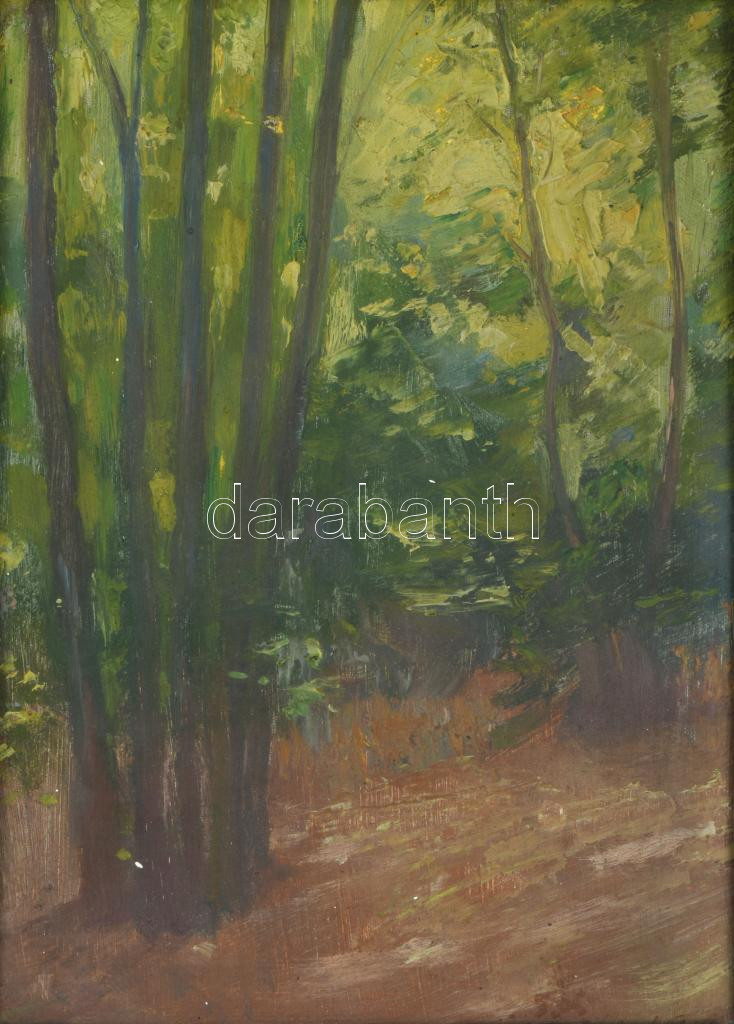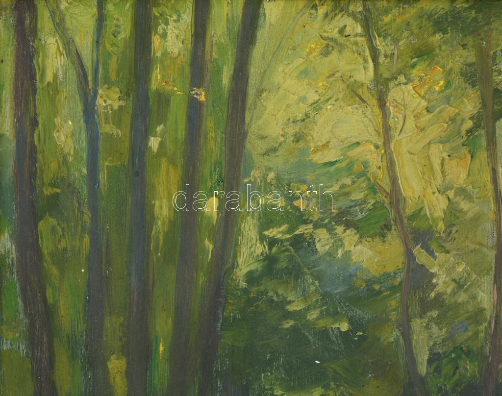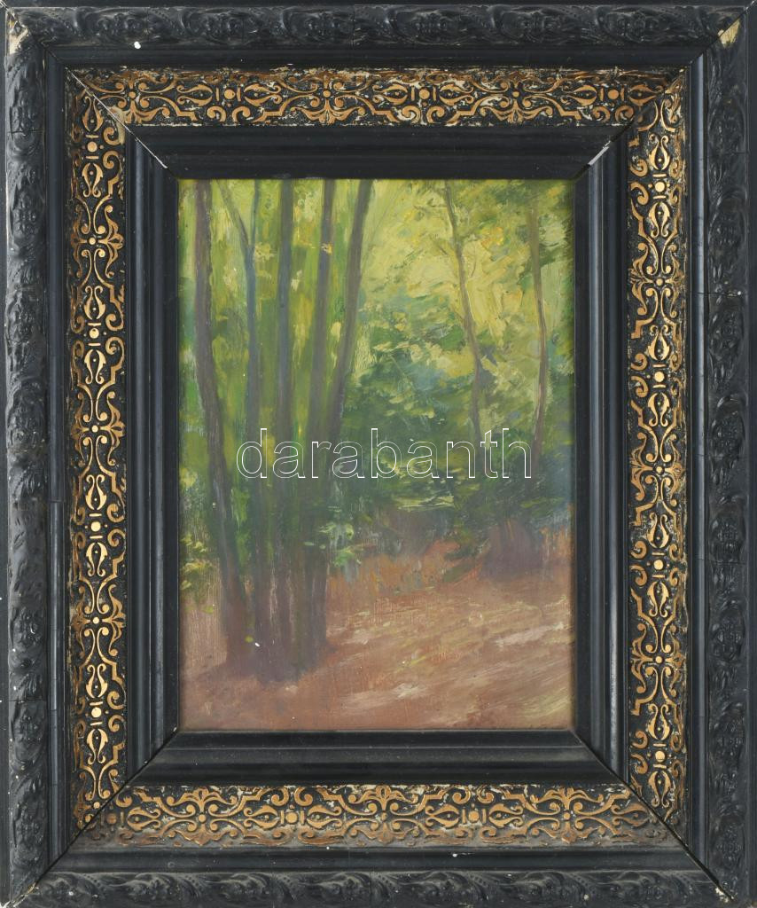 Sárkány jelzéssel (Sárkány Gyula?): Erdőrészlet. Olaj, karton. Dekoratív, sérült fakeretben, 26×19 cm