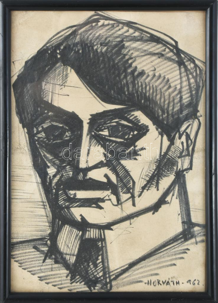 Horváth Ferenc (1933-1991): Ady Endre portréja, 1962. Lavírozott tus, papír, jelzett, üvegezett fakeretben, 25×18 cm