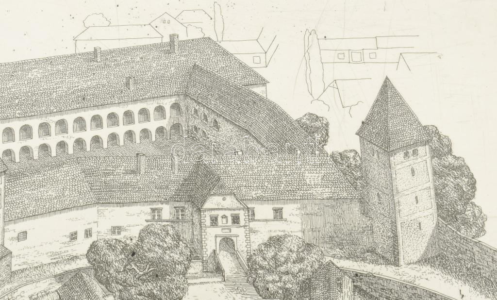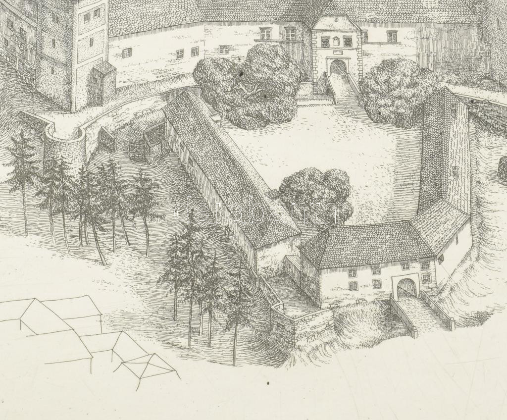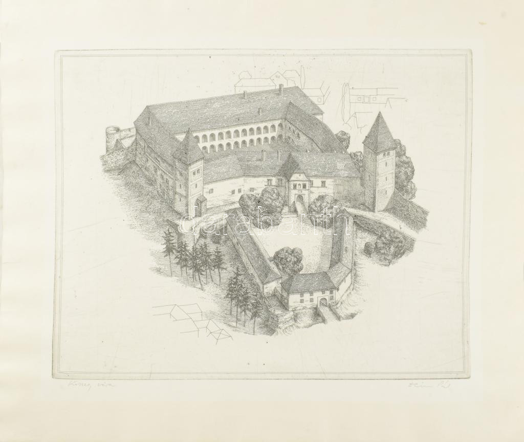 Deim Pál (1932-2016): Kőszeg vára. Rézkarc, papír, jelzett, lapszéli apró felületi sérülésekkel, 29×38 cm