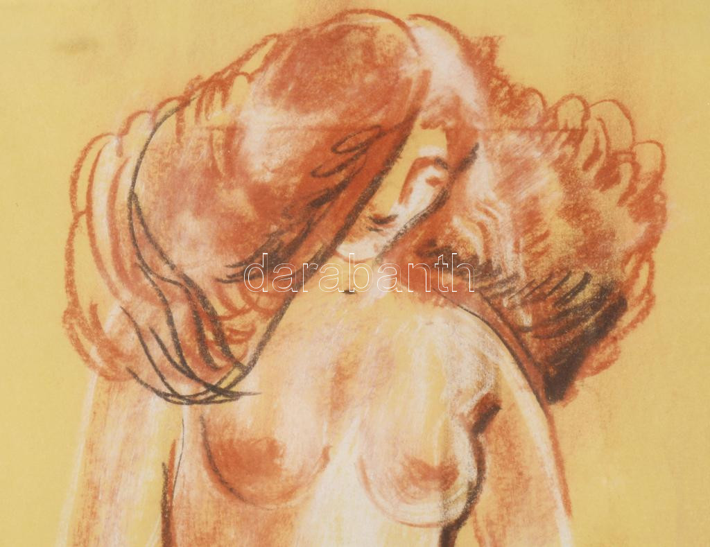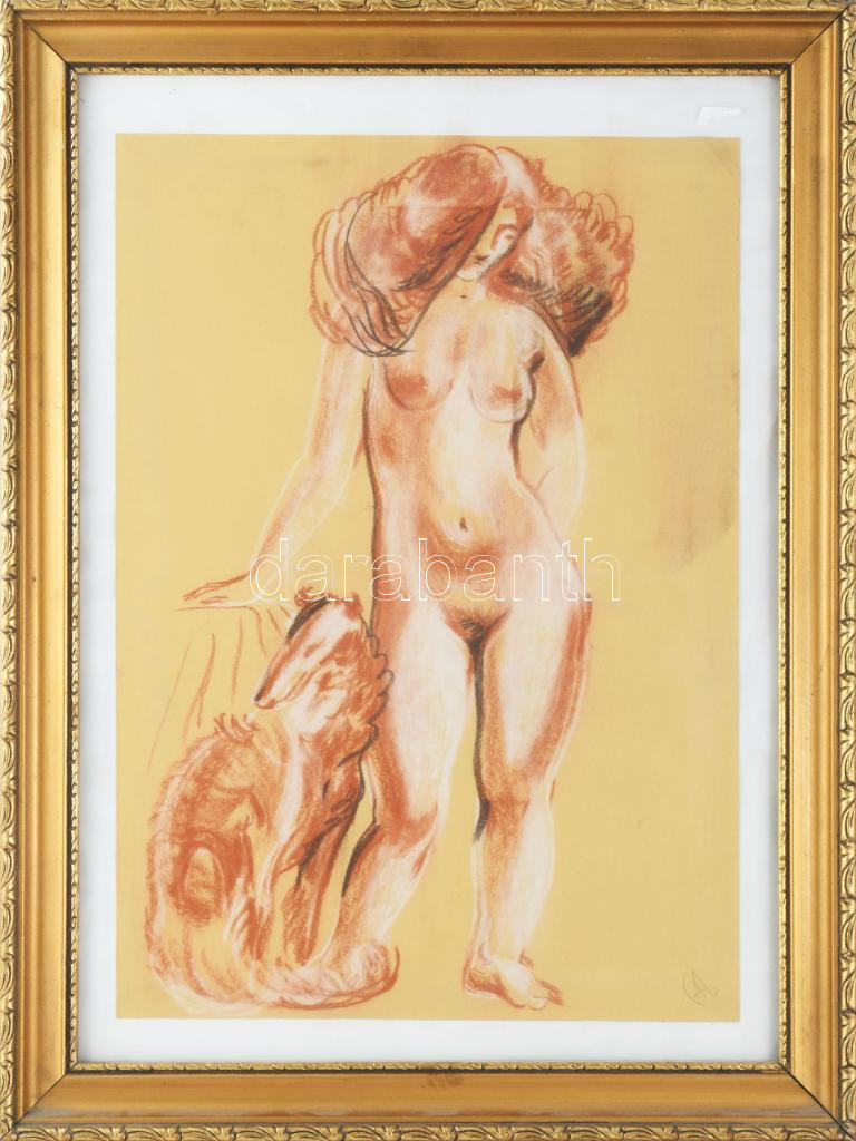 Jelzés nélkül: Női akt agárral. Vegyes technika, papír. Üvegezett keretben, 42×29,5 cm