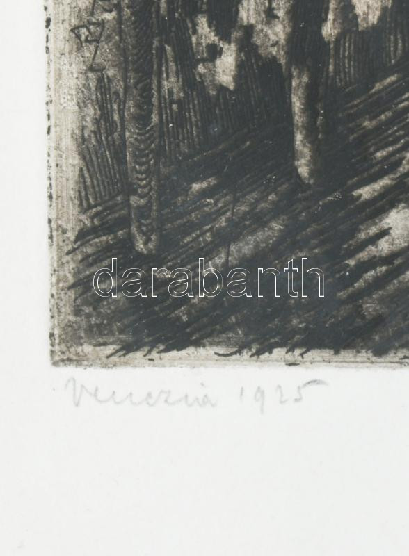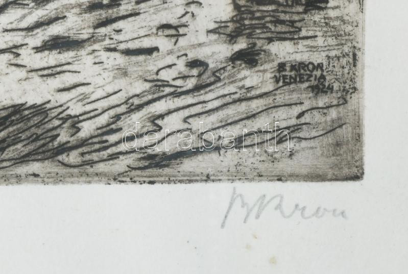 Krón Béla (1884-1965): Velencei részlet, 1925. Rézkarc, papír, jelzett, üvegezett fakeretben, 27,5×19 cm