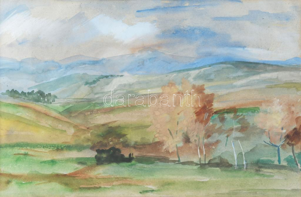 Jelzés nélkül: Táj. Akvarell, papír. Üvegezett fakeretben. 28,5x43,5 cm