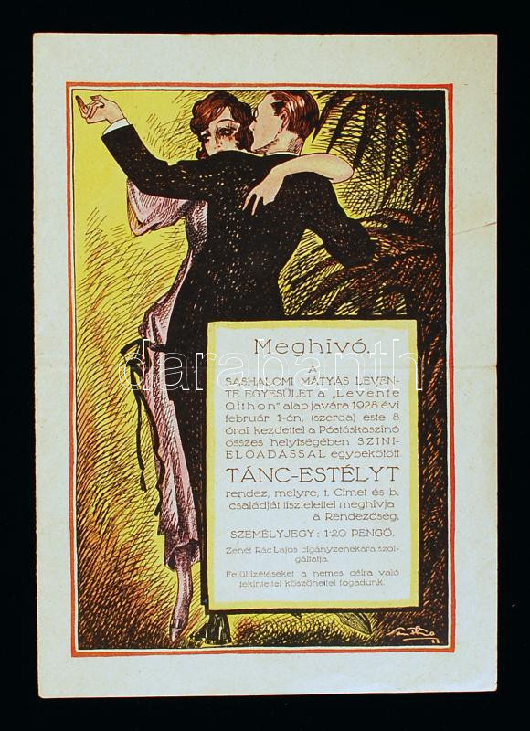 1928 Sashalomi Mátyás Levente Tánc-estélyi rendezvényének színes meghí...