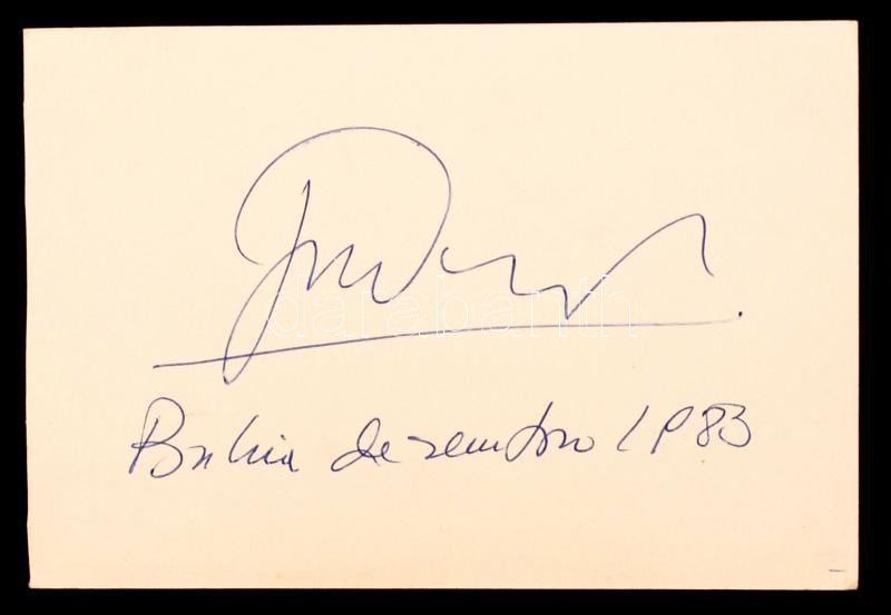1983 Jorge Amado (1912 - 2001) brazil író saját kezű aláírása papírlap...