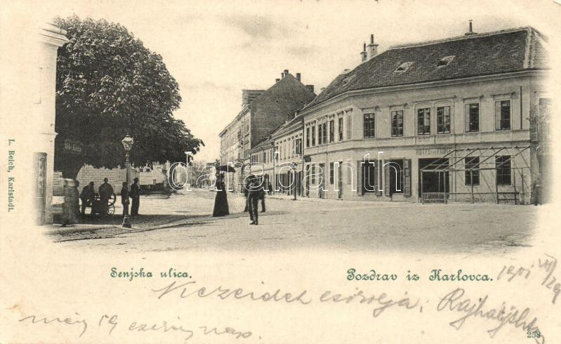 Károlyváros, Karlovac; Senjska ulica, Hotel Fiume; L. Reich / Senj street