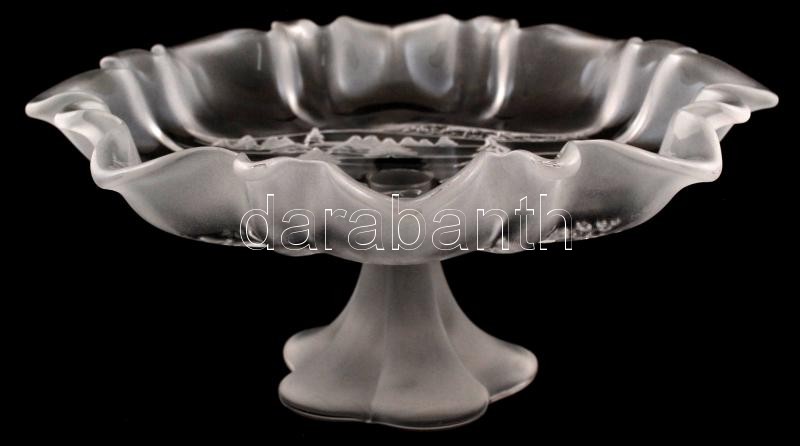 Téli motívumos üveg talpas gyümölcsöstál, formába öntött, jelzés nélkü...