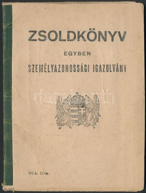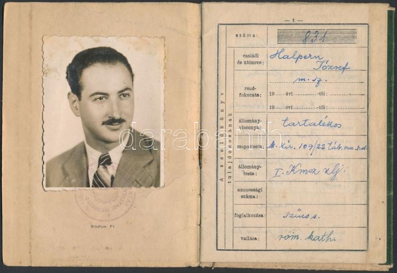 1943 Fényképes zsoldkönyv munkaszolgálatos részére