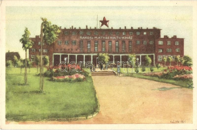 Budapest XIII. Rákosi Mátyás Kultúrház, Képzőművészeti Alap kiadása, magyar kommunista propagandalap / Hungarian communist propaganda card s: Zábori István