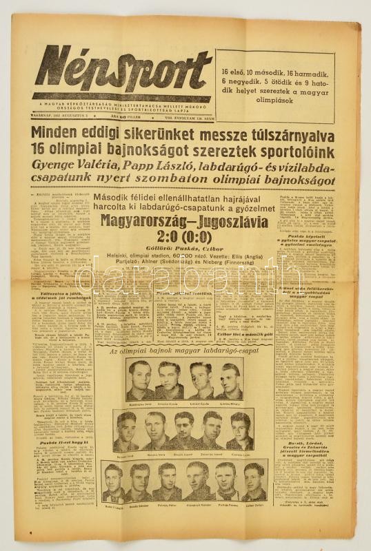 1952 a Népsport 8. évf. 158. lapszáma, érdekes írásokkal (Aranycsapat,...