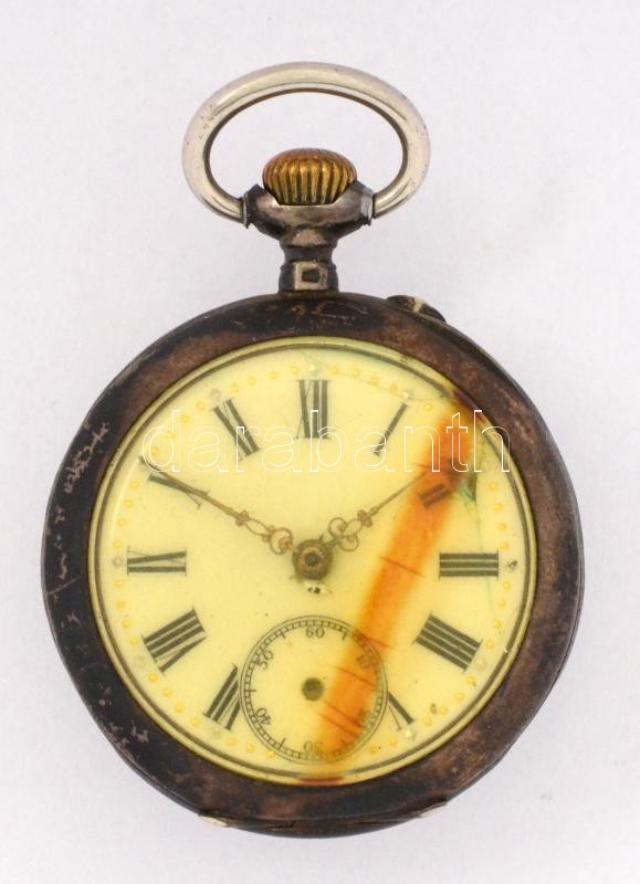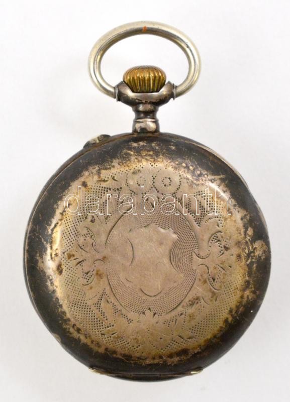 Ezüst tokos zsebóra javítani való szerkezettel 49 g / Silver pocket watch with non working mechanics. d: 4,2 cm