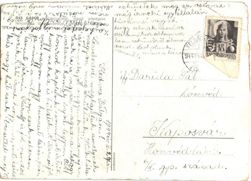 Óss Gábor szakaszvezető egyik gépágyús félszakasz lövegvezetője gyilko... https://www.darabanth.com/en/340-Online-auction/340.0/Postcards/Militaria~1000085/Oss-Gabor-szakaszvezeto-egyik-gepagyus-felszakasz-lovegvezetoje-gyilkos-elllenseges-repul~II1911999