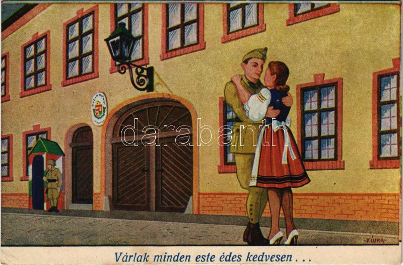 1943 Várlak minden este édes kedvesen... Második világháborús magyar katonai romantikus lap / WWII Hungarian military romantic card s: Kluka (EK)