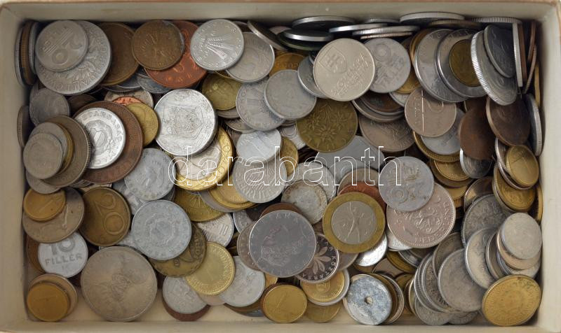 Vegyes, magyar és külföldi érmetétel mintegy ~1kg súlyban T:vegyes Mixed, Hungarian and foreign coin lot (~1kg) C:mixed
