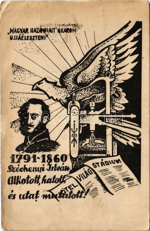 1791-1860 Széchenyi István alkotott, hatott és utat mutatott! Széchenyi Emlék-levelezőlap. A Széchenyi Munkaközösség kiadása (gyűrődések / creases)