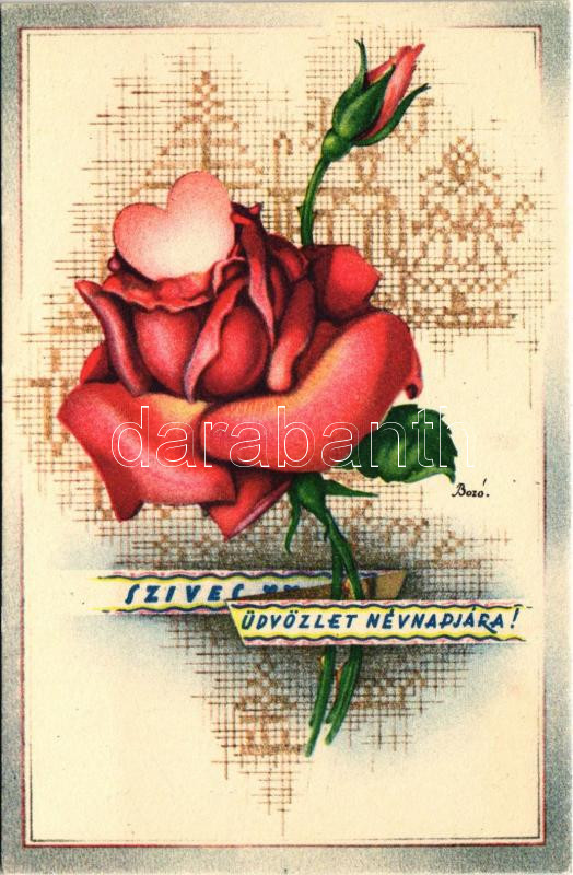 https://www.darabanth.com/en/434-Online-auction/434.0/Postcards/Greeting-Cards-Holidays~2000081/Szives-udvozlet-nevnapjara-Name-Day-greeting-art-postcard-Hungarian-folklore-s-Bozo~II2769773