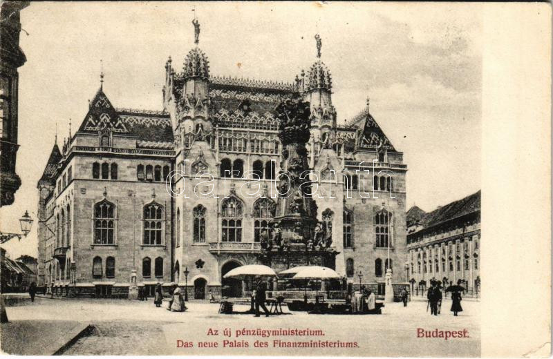 1908 Budapest I. Új Pénzügyminisztérium, Szentháromság szobor, piac (E...