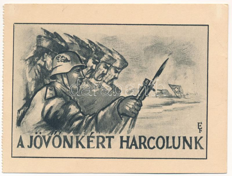 Jövőnkért harcolunk. 1919. Júniusi Bajtársak Szövetsége anti-bolsevista levelezőlap-sorozata. Terjeszti a Propaganda Iroda / We are fighting for our future. Hungarian anti-Bolshevik, anti-Soviet propaganda s: E.F. (EB)