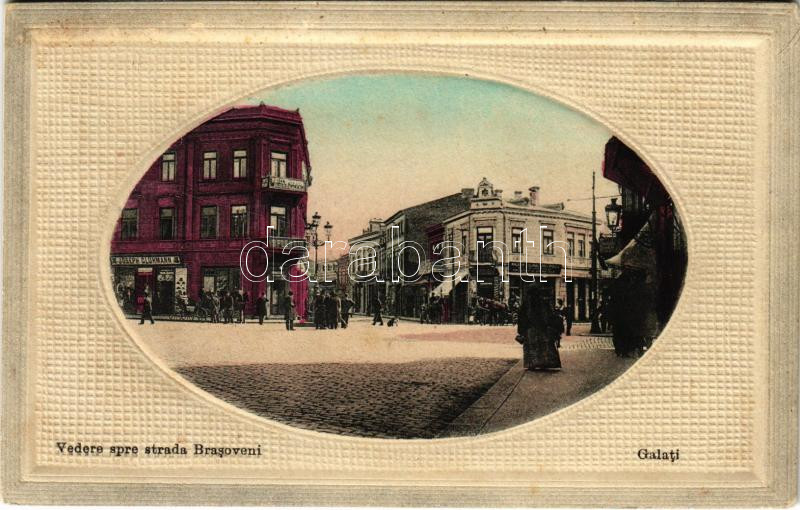 1912 Galati, Galatz; Vedere spre strada Brasoveni / street view, Hotel Splendid, shop of Joseph Glükmann. Ed. Negoescu & Manitiu (wet corners)