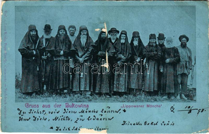 1898 (Vorläufer) Chernivtsi, Czernowitz, Cernauti, Csernyivci (Bukovina); Gruss aus der Bukowina. Lippowaner Mönche / monks from Lipowa (cut)