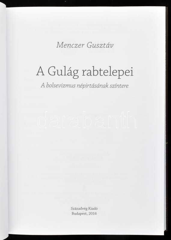 https://www.darabanth.com/en/445-Online-auction/445.0/Books/Books-History~1500010/Menczer-Gusztav-A-Gulag-rabtelepei-A-bolsevizmus-nepirtasanak-szintere-Bp-2016-Szazadv~II2940064