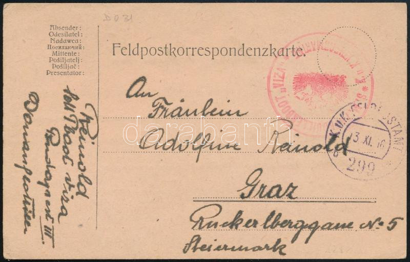 1916 Tábori posta levelezőlap / Field postcard "S.M. PATROUILLENBOOT VIZA / K.u.K. KRIEGSMARINE" , "K.u.K. FELDPOSTAMT 299"