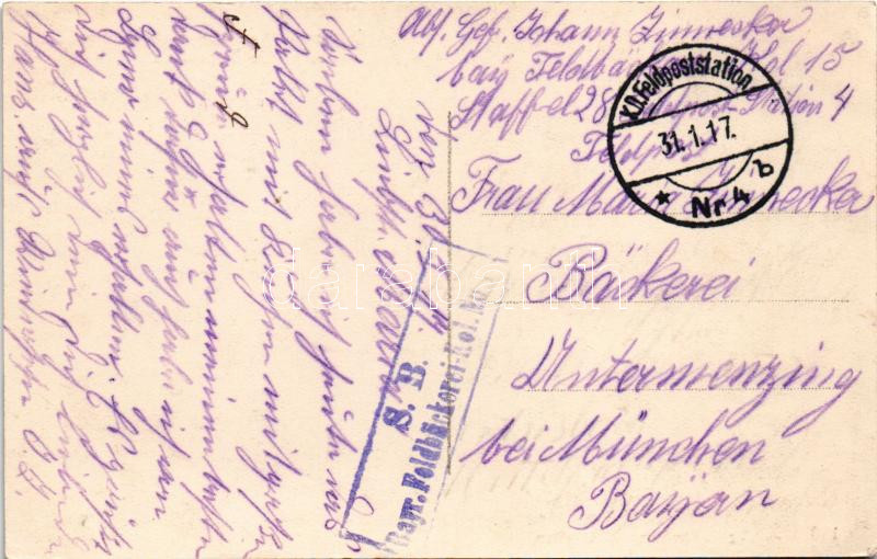Description: 1917 Deinze, La Place de la Station / De Statieplaats. Uitg. G. Van Coppenolle / café, restaurant, railway station, shops, pool salon + "K.D. Feldpoststation Nr. 4." (EK)