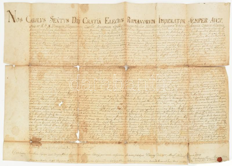 1754 VI Károly császár, III. Károly néven magyar király oklevelének ko...