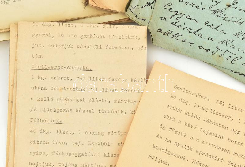 cca 1860-1940 Receptgyűjtemények, kézzel és géppel írva. Sütemények, k... https://www.darabanth.com/en/460-Online-auction/460.0/Books/Books-Gastronomy-and-Gardening~1000023/cca-1860-1940-Receptgyujtemenyek-kezzel-es-geppel-irva-Sutemenyek-kekszek-receptjei~II3081401