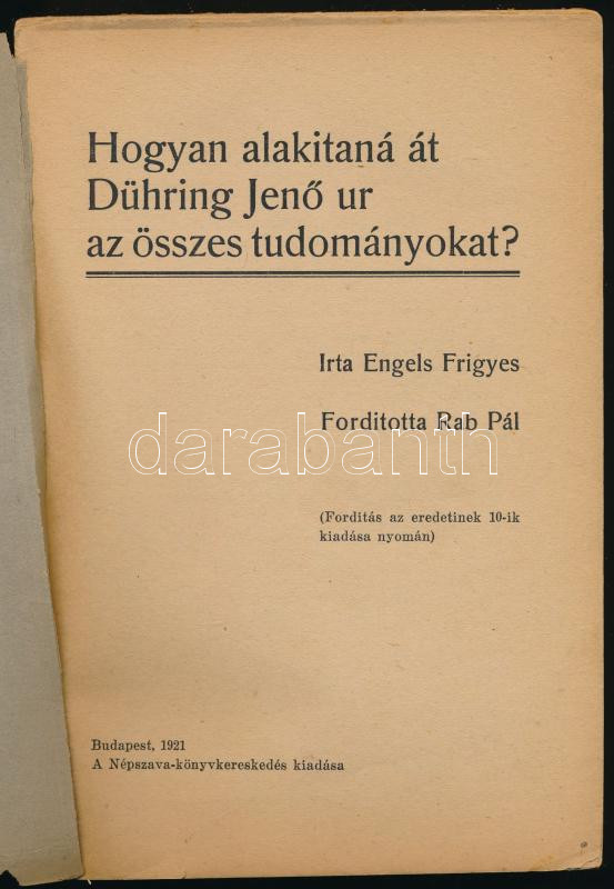 Engels Frigyes: Hogyan alakítaná át Dühring Jenő ur az összes tudomány... https://www.darabanth.com/en/460-Online-auction/460.0/Books/Books-Social-sciences~1000026/Engels-Frigyes-Hogyan-alakitana-at-Duhring-Jeno-ur-az-osszes-tudomanyokat-Ford-Rab-Pal-Bp-~II3036559