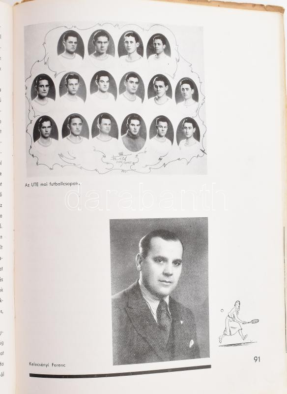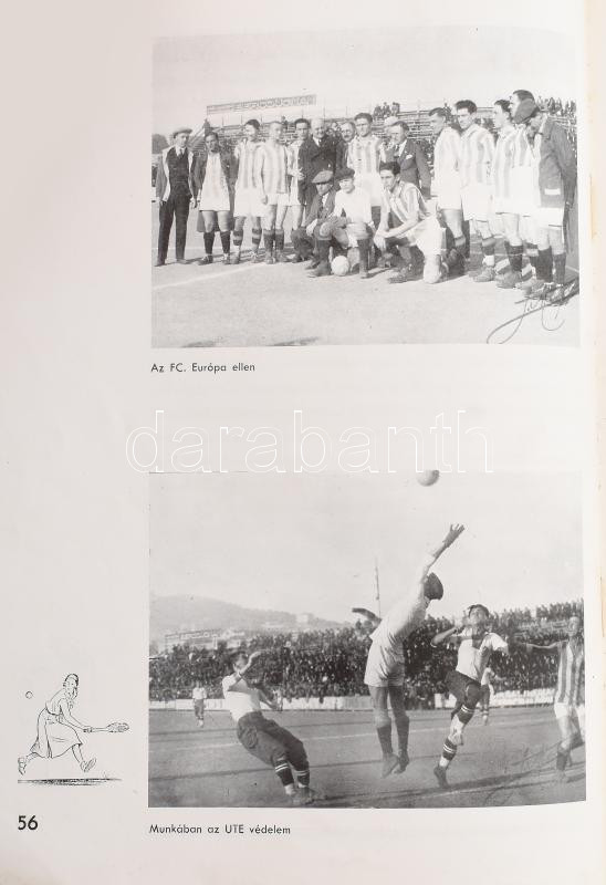 Az UTE 50 esztendős története 1885-1935. Bp., 1935, Hungária-ny.,161 p. Fekete-fehér fotókkal, és Szűcs Pál lapszéli rajzaival illusztrált. Kiadói papírkötés, kopott, foltos borítóval, a borító sarkán gyűrődésnyommal, sérült gerinccel.